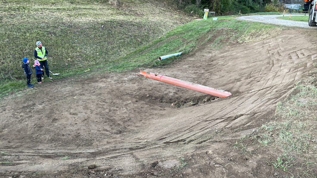 Die vorgesehene Übungsfläche für unsere Jugendfeuerwehr wurde in der Bauphase durch mehrere Starkregenereignisse stark in Mitleidenschaft gezogen. Durch die heftigen Regenfälle wurde viel Erdreich abgeschwemmt, sodass die notwendige Breite der Bahn nicht erhalten blieb. Nach der ersten Trainingssaison zeigte sich deutlich, dass hier Handlungsbedarf bestand.