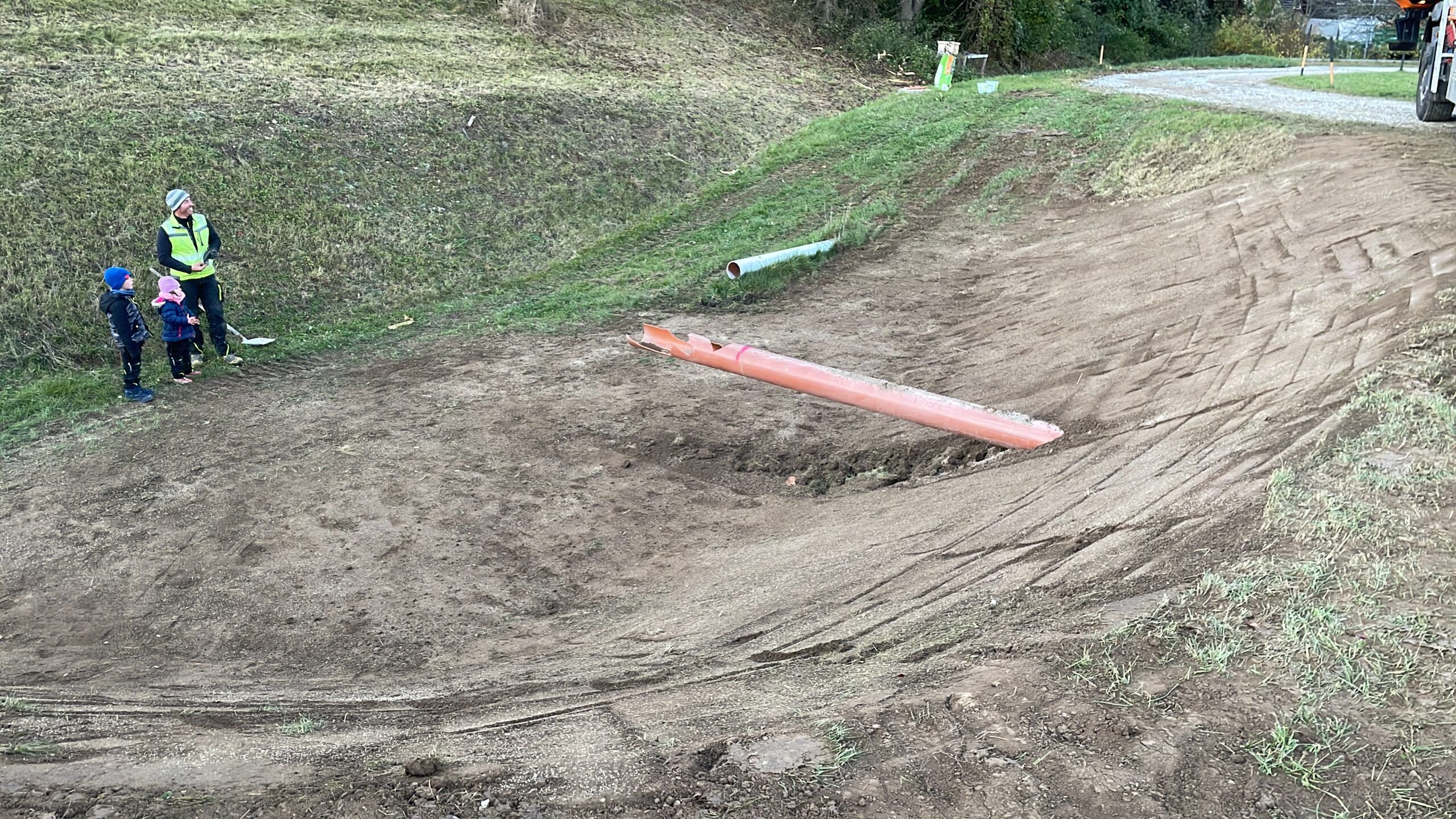 Gemeinsam mit Florian Lindenbauer, der sich bereit erklärte, die Arbeiten zu übernehmen, wurde das Projekt in Angriff genommen. Unterstützt wurde er dabei vom Bauhof Kronstorf, dessen LKW von BI d. F. Matthias Zach gelenkt wurde, um das Erdreich abzutransportieren. HBM Erwin Reifenauer steuerte mit präziser Hand den Bagger von Florian Lindenbauer – fast wie ein Chirurg – und sorgte so für die exakte Form der neuen Bahn. Auch Florian Lindenbauer selbst war tatkräftig mit seinem LKW im Einsatz und trug entscheidend dazu bei, dass die Arbeiten schneller als geplant abgeschlossen werden konnten.