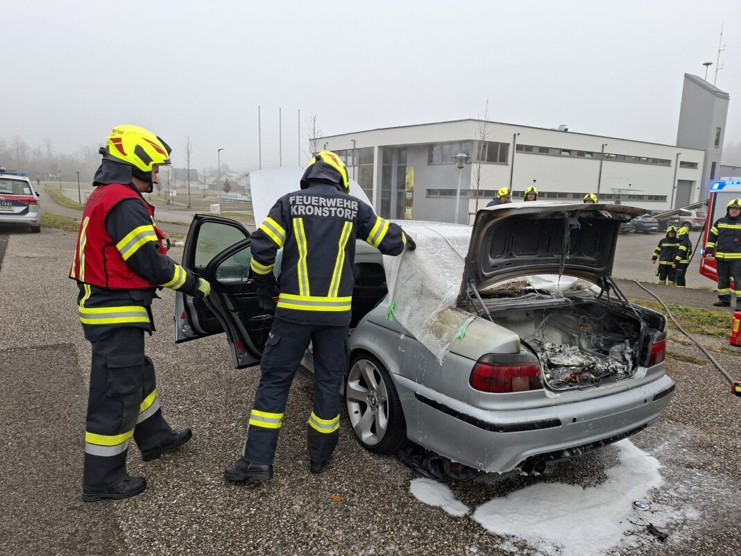 Am Sonntag, den 16.11.2025, wurde die Feuerwehr Kronstorf am Vormittag zu einem PKW Brand in unmittelbarer Nähe zum Feuerwehrhaus alarmiert.